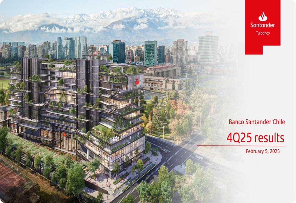 Banco Santander-Chile, together with its subsidiaries, provides commercial and retail banking products and services in Chile. It operates through Retail, Wealth Management & Insurance, Middle-Market, Corporate and Investment Banking, and Corporate Activities and Other segments. The company provides checking accounts and savings products; debit and credit cards; consumer, auto, commercial, mortgage, and government-guaranteed loans; and Chilean peso and foreign currency denominated loans to finance various commercial transactions, trade, foreign currency forward contracts, and credit lines, as well as mortgage financing services. It offers mutual fund management, insurance and securities brokerage, foreign exchange services, financial leasing, financial consulting and advisory, investment management, foreign trade, leasing, factoring, treasury, and transactional services, as well as specialized services to finance residential projects. In addition, the company offers short-term financing and funding, and brokerage services, as well as derivatives, securitization, and other products; and manages capital allocations. Further, it provides health, life, travel, automobile, and unemployment insurance products; personal and corporate protection products; guarantees; international investment accounts, structured funds, and alternative investment funds; and wealth management and open architecture, asset management, and private banking services. It serves individuals, small to middle-sized companies, and other companies, as well as universities, government agencies, municipalities, regional governments, and construction and real estate companies. The company was incorporated in 1977 and is headquartered in Santiago, Chile. Banco Santander-Chile is a subsidiary of Banco Santander, S.A.